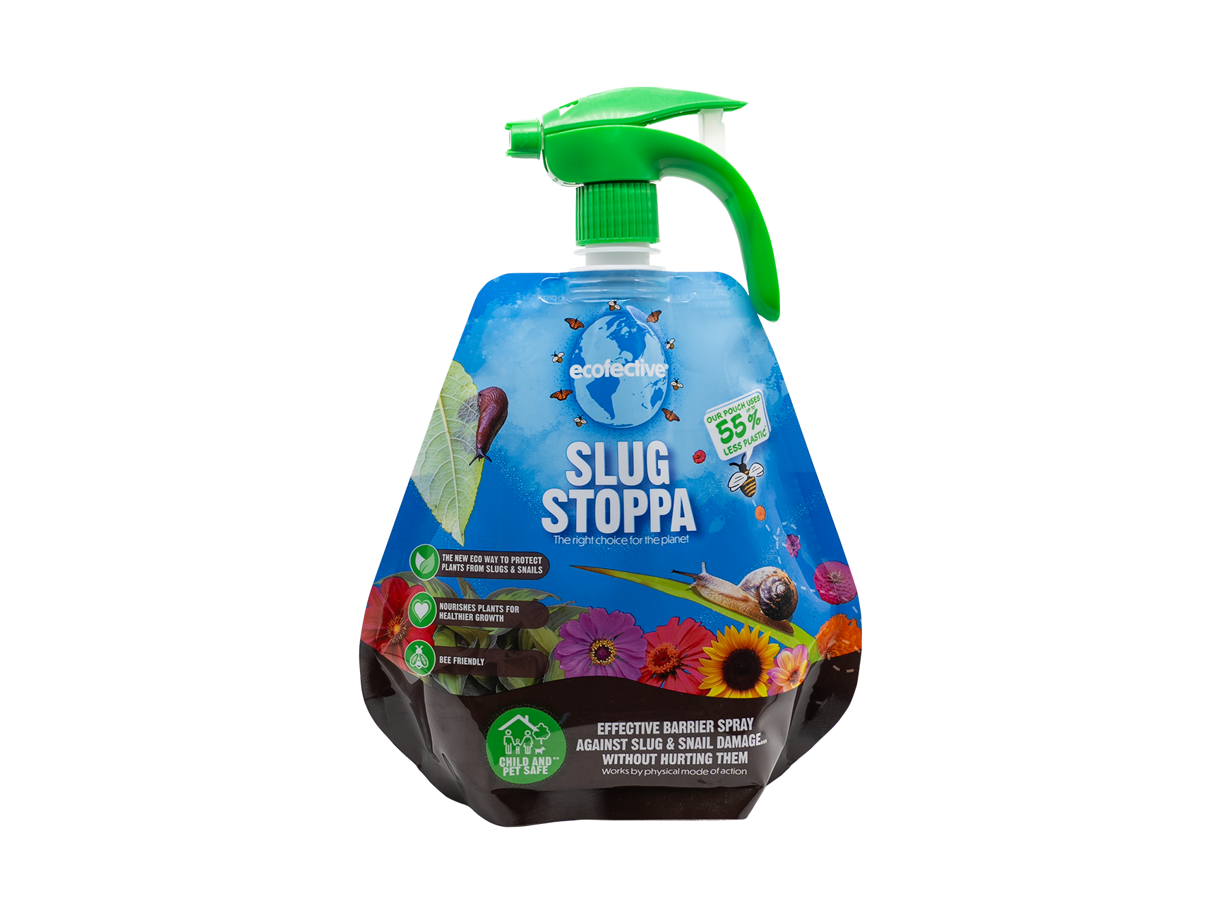 Introducing Ecofective Slug Stoppa RTU Trigger Pouch, the eco-friendly solution to protect plants from slug and snail damage. This effective barrier spray nourishes plants for healthier growth without harming these pests. With a physical mode of action and pesticide-free formula, it's gentle on the environment. Plus, its innovative pouch packaging uses up to 55% less plastic.