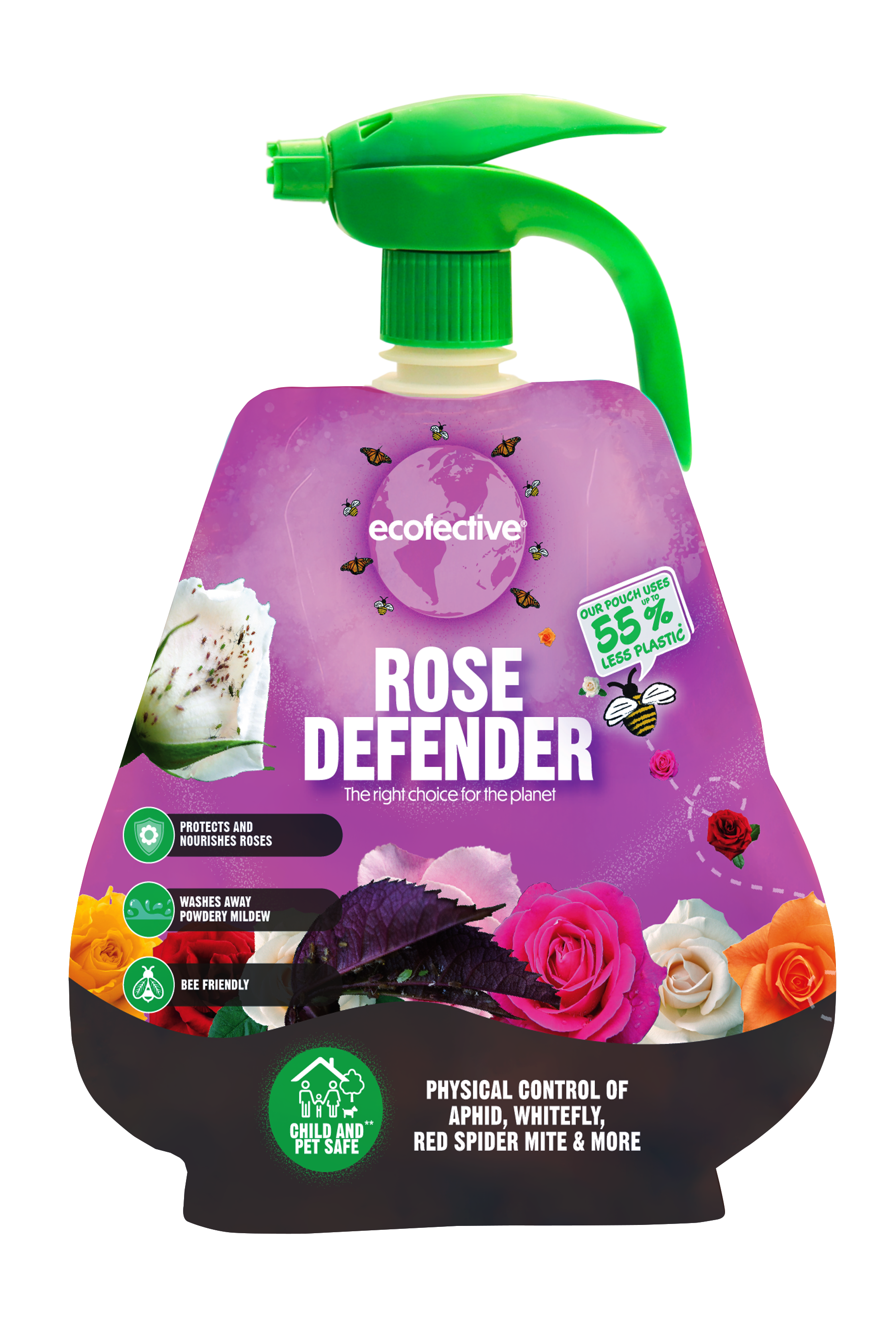 Protect your roses with Ecofective Rose Defender. This easy-to-use pouch controls common pests like aphids and whiteflies. Say goodbye to powdery mildew with its unique spore-washing formula. Plus, it nourishes your plants for vibrant, healthy blooms. With a physical mode of action and pesticide-free formula, it's also environmentally friendly. And with up to 55% less plastic in its packaging, it's a sustainable choice too.