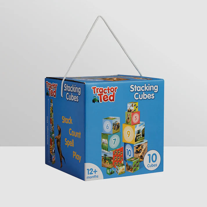 These Tractor Ted Stacking Cubes are Tedastic fun and have lots of ways to play and learn. The ten individual stacking cubes each have five different sides that little ones can practise spelling, counting, big to small animals and see farm machines. Made from study cardboard they can be stacked up tall, along the floor or however your little one chooses.